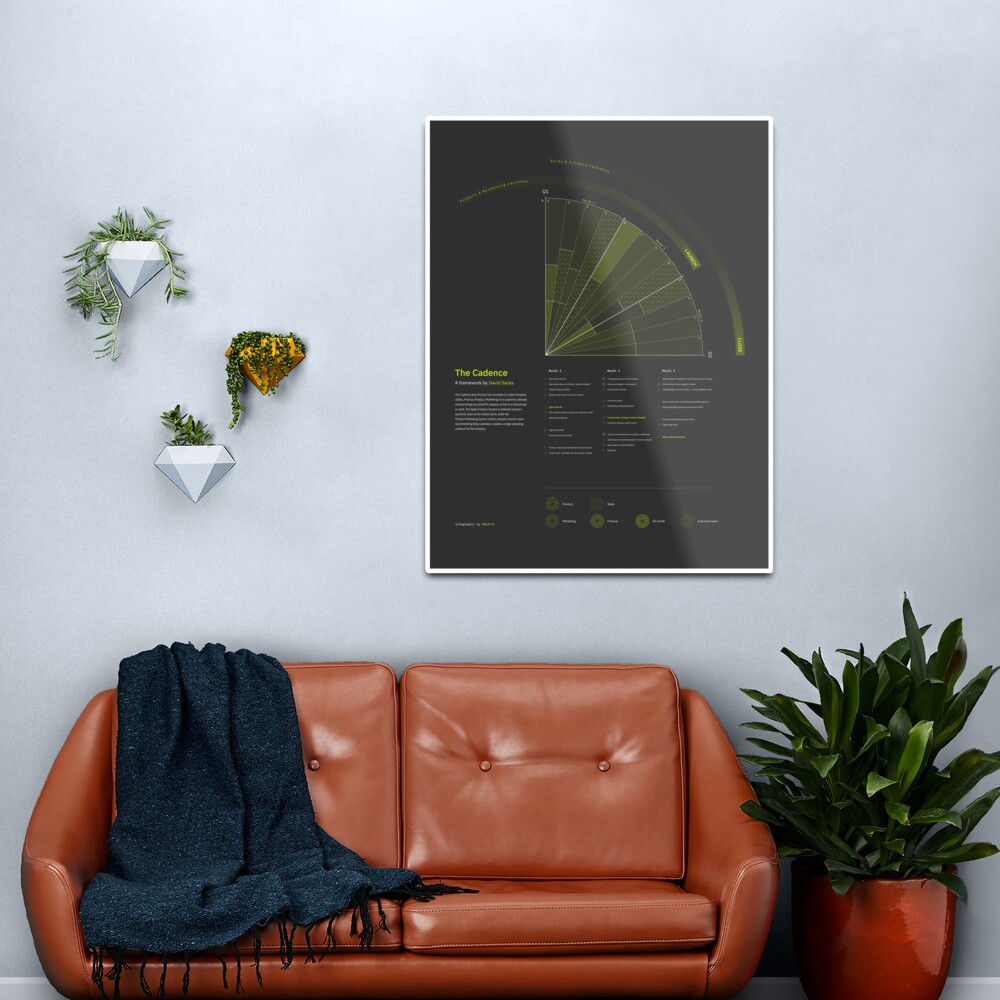 David’s 13 minute blog post and 20 slides deck describes The Cadence in detail and so I thought to distill this down to create a visual interpretation made available as prints so that it could easily be hung on any aspiring founder’s wall.